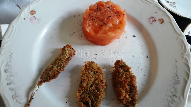 L'altro ingrediente é il salmone crudo (abbattuto).